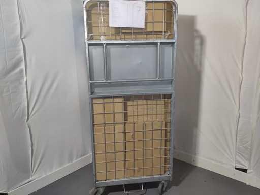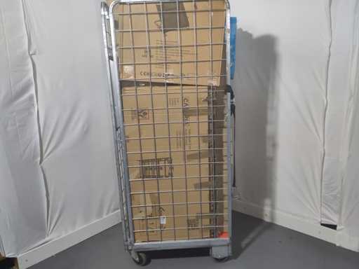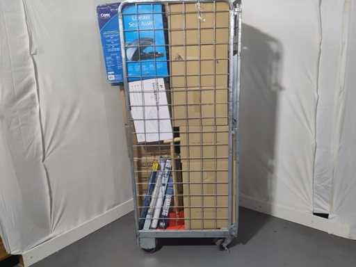 Volle rolcontainer met voornamelijk overstock, overbevindingen, retouren. Rolcontainer niet inbegrepen.