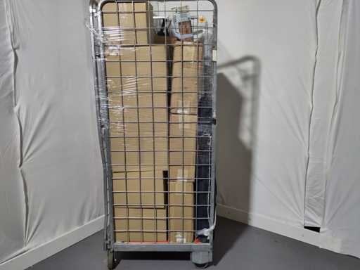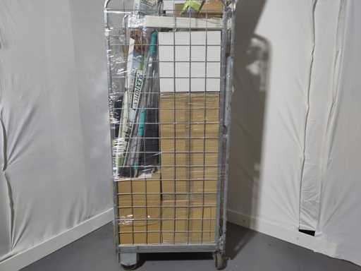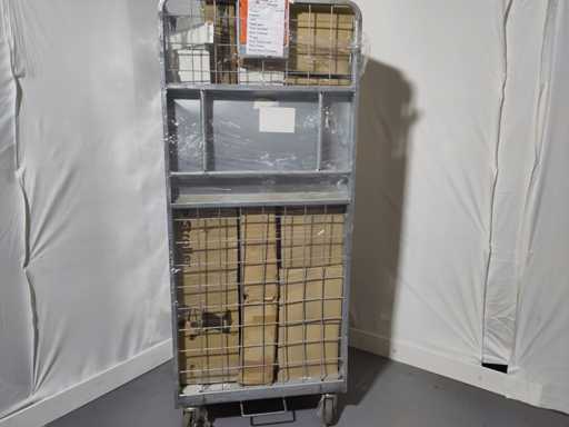 Volle rolcontainer met voornamelijk nieuwe overstock, overbevindingen, retouren. Kar niet inbegrepen.