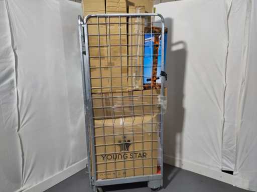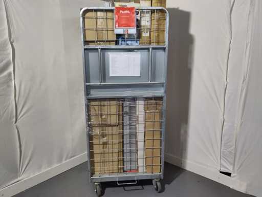Volle rolcontainer met voornamelijk overstock, overbevindingen, retouren. Rolcontainer niet inbegrepen.