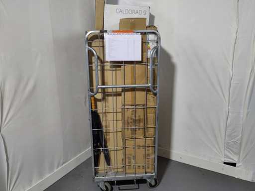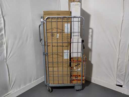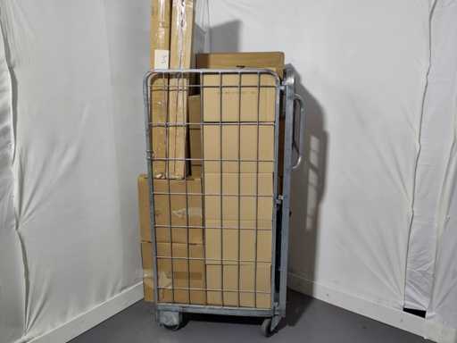 Volle rolcontainer met voornamelijk overstock, overbevindingen, retouren. Rolcontainer niet inbegrepen.