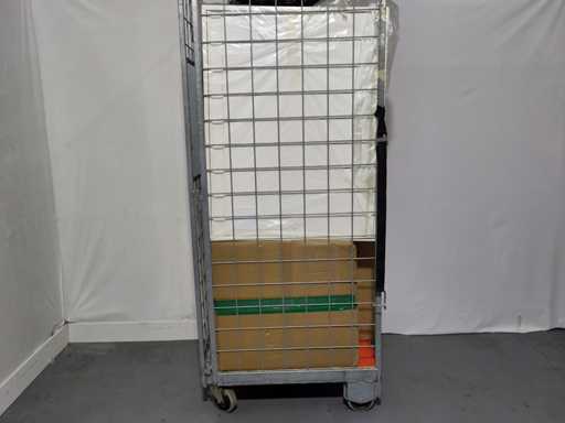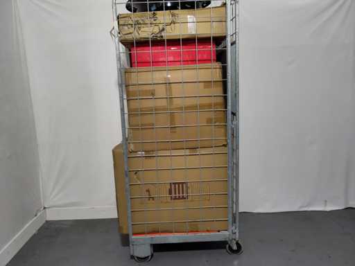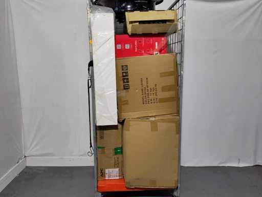 Volle rolcontainer met voornamelijk overstock, overbevindingen, retouren. Rolcontainer niet inbegrepen.