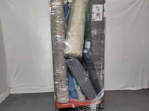 Volle rolcontainer met voornamelijk overstock, overbevindingen, retouren. Rolcontainer niet inbegrepen.