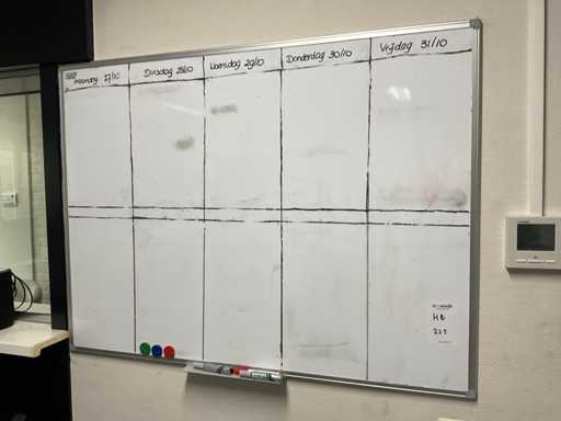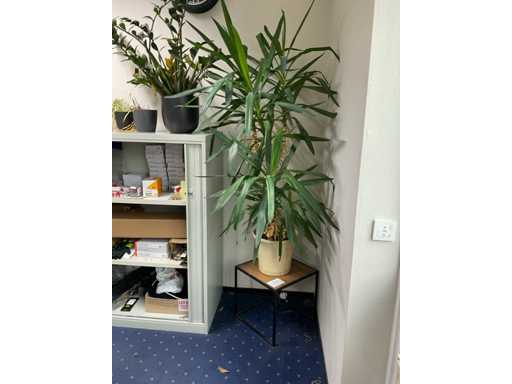 Afmetingen 115x53x197 cm, 120x45x197 cm, 115x53x136 cm, inclusief planten, extra kastje, 2x whiteboards, 2x bijzettafel, kapstok, tafel zonder telefoons.