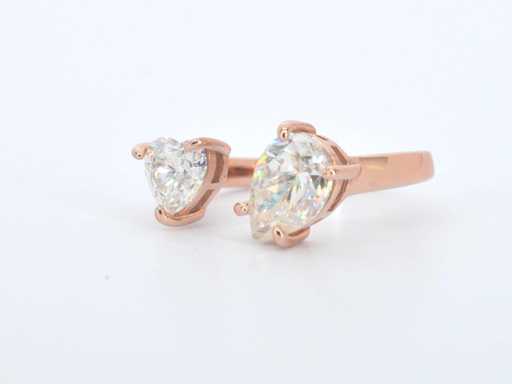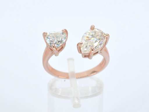 Ring met hartvormige en ovale stenen in rosé zilver
