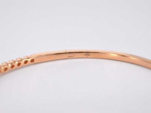 Aantal: 33 stuks; Slijpvorm: Briljant geslepen; Gewicht (carat): 0.50 carat; Kleur: F-G; Zuiverheid: VS; Slijpkwaliteit: Zeer mooi; Juweel: Armband; Gewicht: 8.5 gram; Afmetingen/lengte: Diameter: 60 mm; Materiaal: 18K goud (750) roségoud; Conditie: Nieuw; Verpakking: Luxe sieradendoos; Toelichting: De kwaliteit is overgenomen van het rapport behorend bij item. De waardebepaling is een beoordeling van een gecertificeerde diamantair, gebaseerd op consumentenprijzen.; Consumentenprijs: € 7.105,-