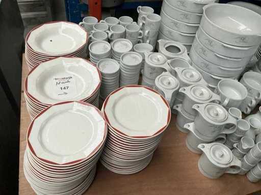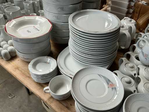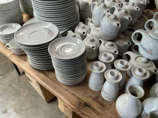 Bestaande uit diverse koffietassen, soepkommen, melkkannetjes, theekannen, diverse borden en onderborden, peper en zoutvaten,..