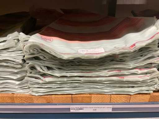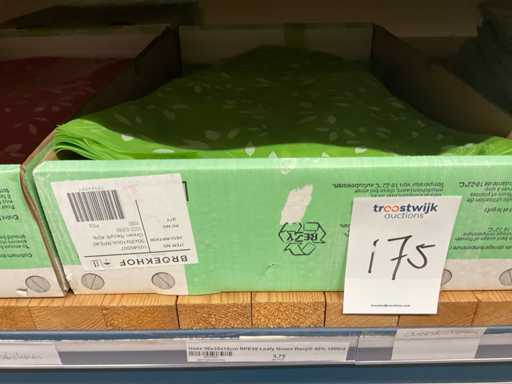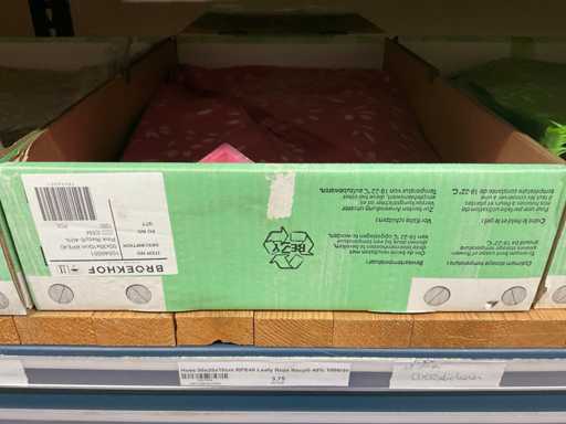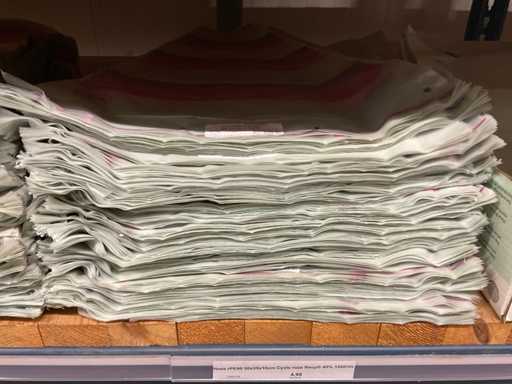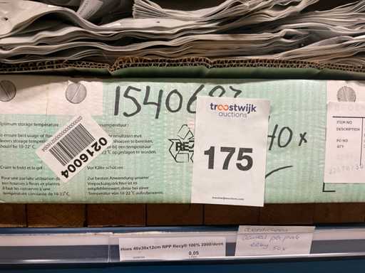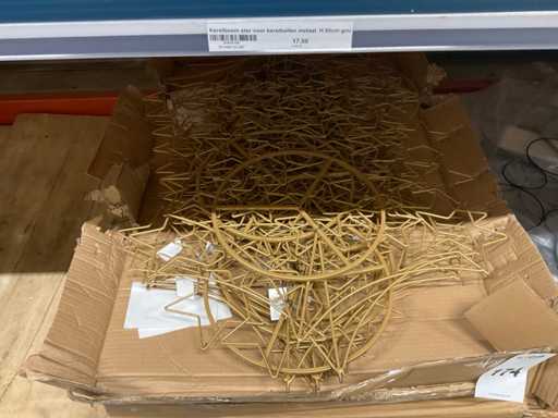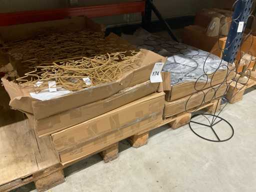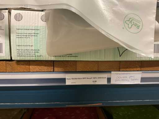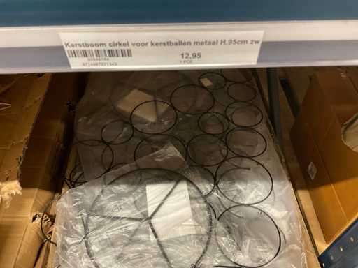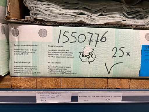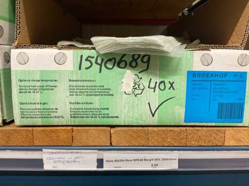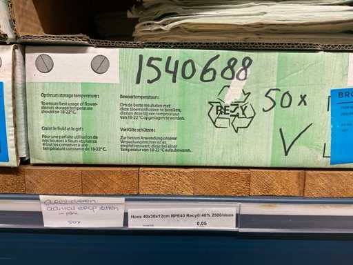 Bloemhoezen in diverse afmetingen met bedrukking, kwaliteit REP40 en RPE, inclusief metalen kerstbomen in goudkleur en zwart t.b.v. kerstballen, alles in 1 stellingsectie, stelling niet inbegrepen.