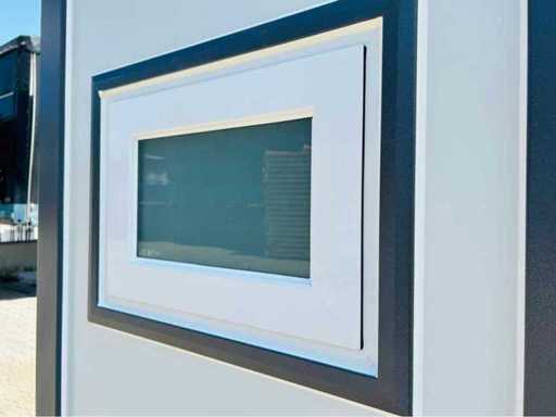 Afsluitbare deur; 3 kiep raam; stelbare poten; hijs oog; heftruck lepelsleuven; opstapje; vinyl vloer; wastafel; toilet; douche; kast; slaapbank; geïsoleerd; ventilator; aansluitingen aanwezig voor af- en aanvoer; 7409