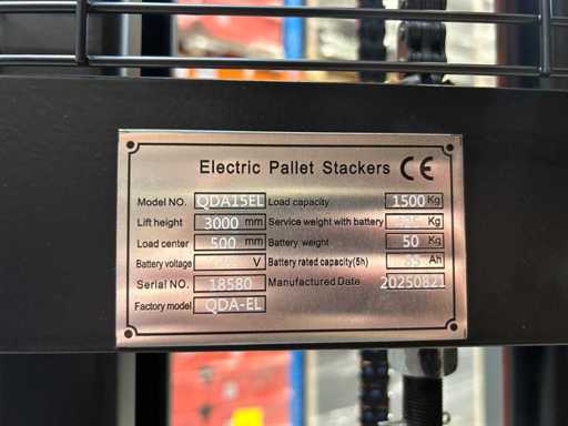 ongebruikt; Totale hoogte 3035mm; drive motor 0,75KW; lift motor 2,2 KW; 24V; 85H battery; 5 werkuur per laadbeurt; 7861