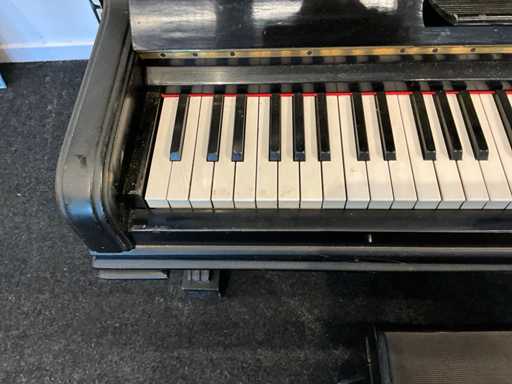 Voorzien van pianokruk in hoogte verstelbaar; 50 witte toetsen en 35 zwarte toetsen