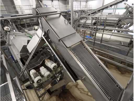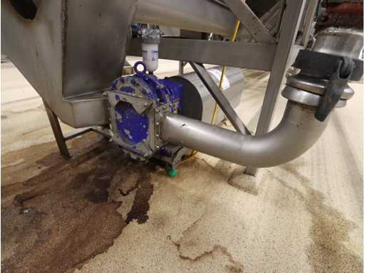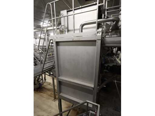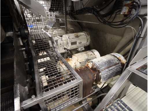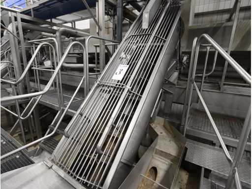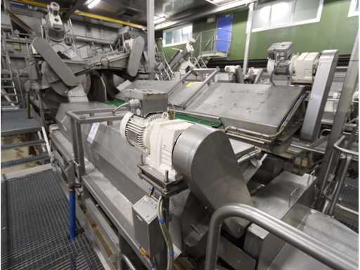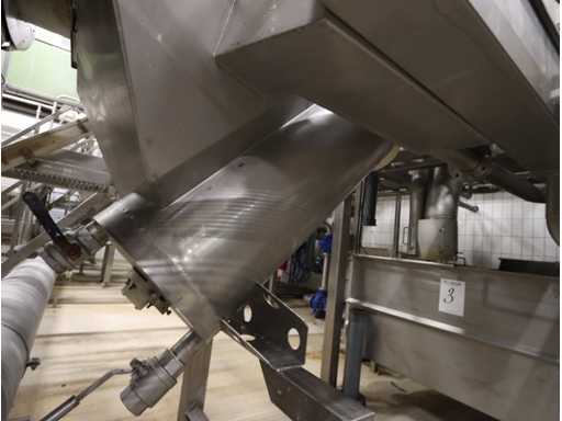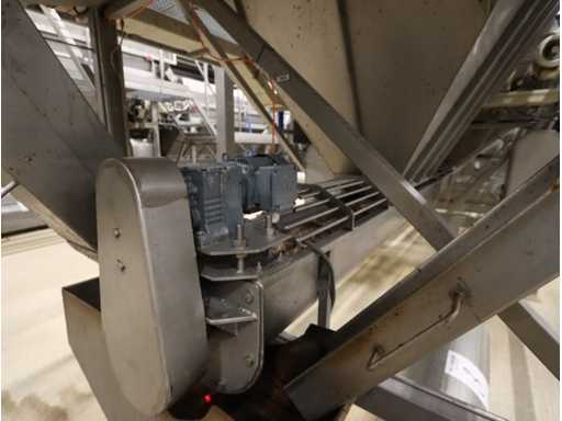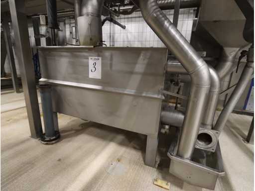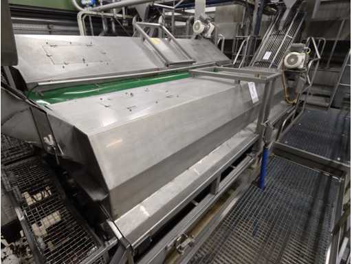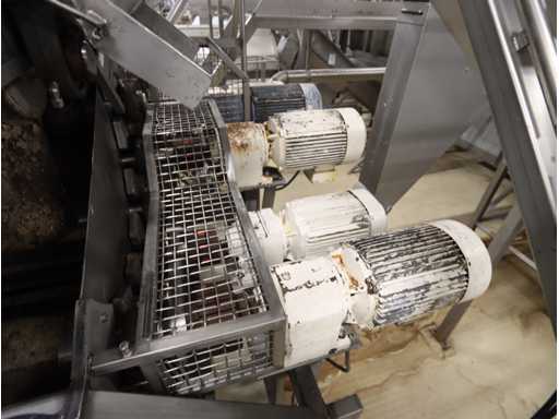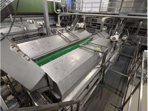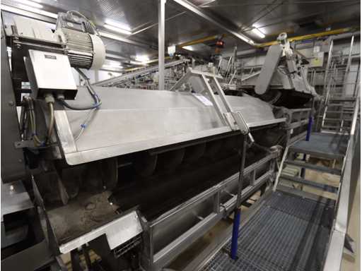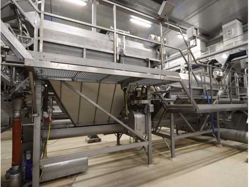 Bestaande uit: “Kiremko” stoomschiller voorzien van invoerbunker (afmeting circa 2400x3000x6000 mm), en onderlopende opvoer schroeftransporteur (lengte circa 6000 mm), “Agrico” 2-voudige ontveller en 2-voudige borstelmachine type AT-OBC-2500, werklengte 2500 mm, beide voorzien van schroeftransporteur, uitvoer schroeftransporteur (lengte 2500 mm) en opvang/filter bak met pomp (afmeting circa 1550x1070x1160 mm)(bordessen niet inbegrepen)