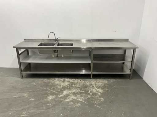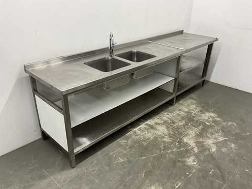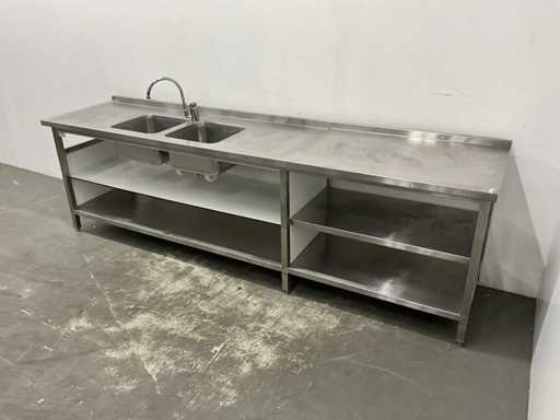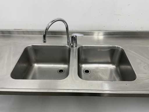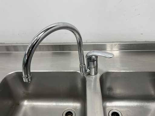 V.v. 2 spoelbakken en mengkraan. Afmeting spoelbakken (LxBxH): 40x40x25 cm.