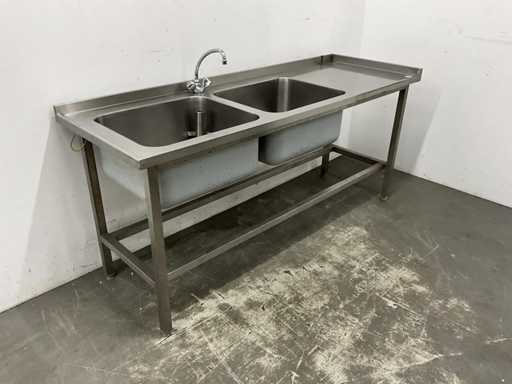 Afmeting spoelbakken: 60x50x30 cm. V.v. mengkraan.