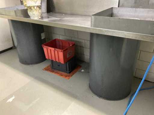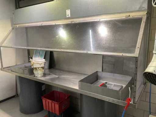 Let op: De tafel is zonder afzuigunit (exhauster) en zonder leidingwerk. Alleen de tafel en kap zijn inbegrepen tot dit kavel.