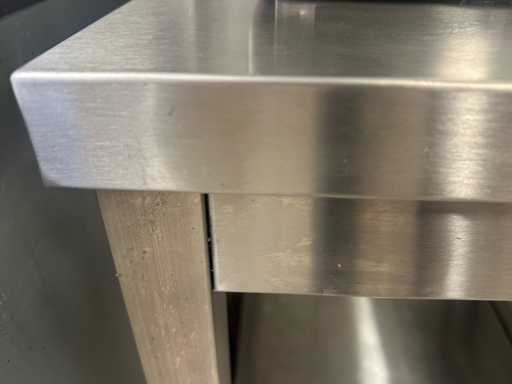 Deze kleine werktafel is voorzien van RVS onderschap en stelpoten.