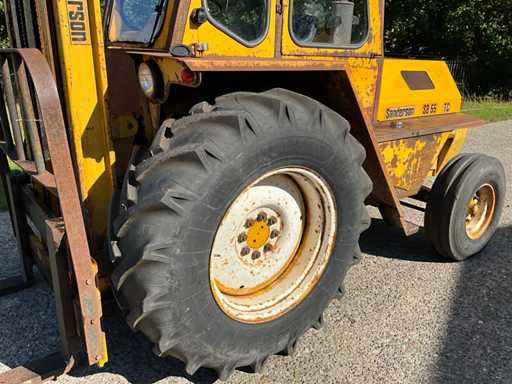 Voorzien van 4-Cil. “Ford” Dieselmotor; 4 versnellingen; vooruit / achteruit hendel aan stuur; 2 wiel aangedreven; bandenmaat voor: 16.9-28; bandenmaat achter: 9.00-16; trekhaak;