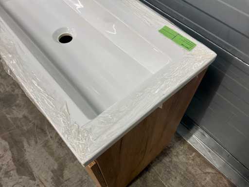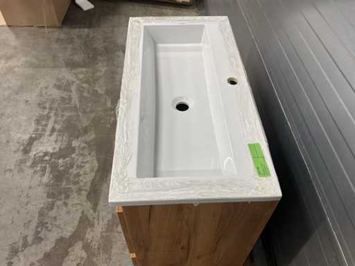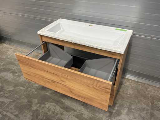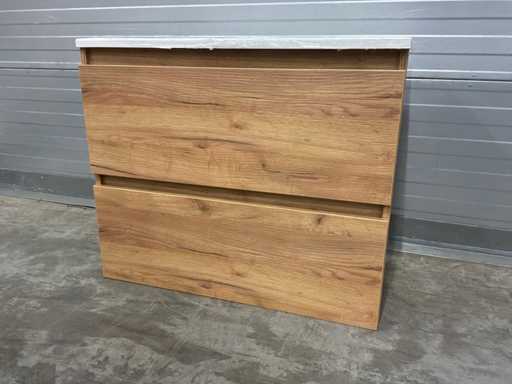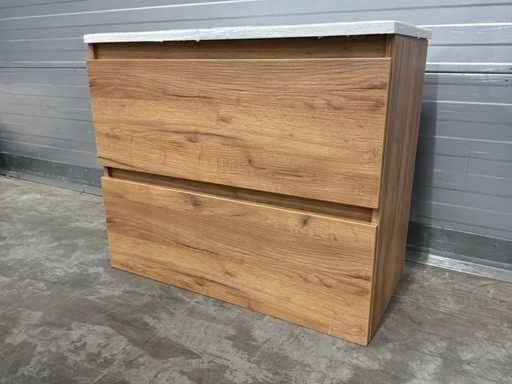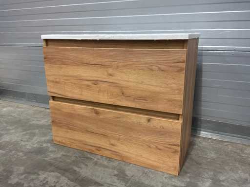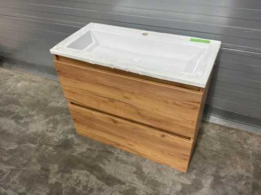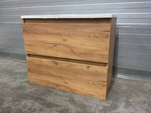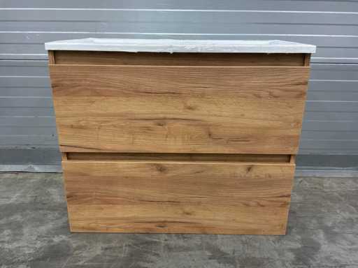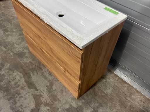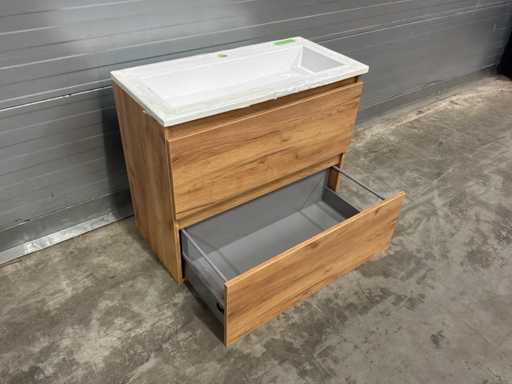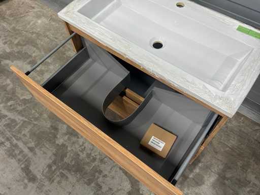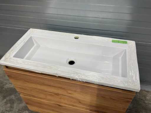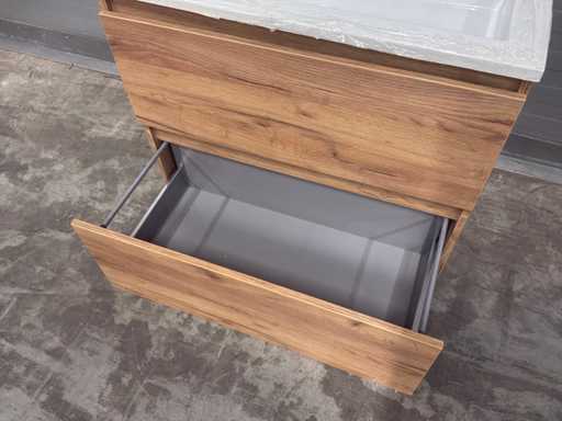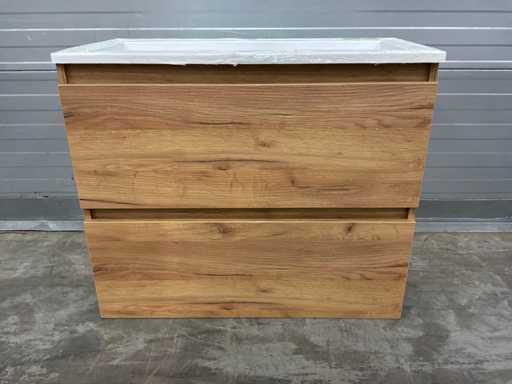 Set START-39 onderkast whisky oak 80cm greeploos 2x la acryl wastafel 1x kraangat (S39GL80A1WO) SANIBELL