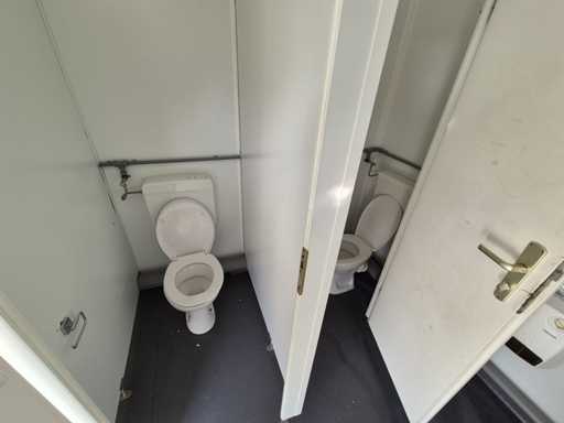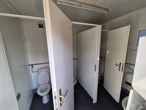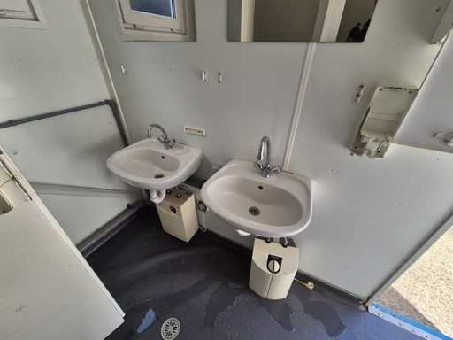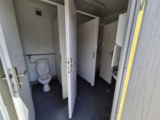 20ft; 5x toilet; 2x urinoir; 2x wasbak; elektrische boiler, verwarming, verlichting