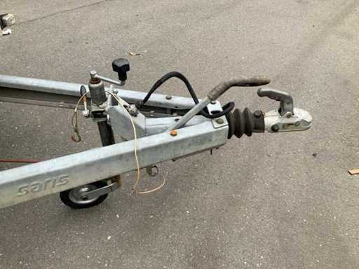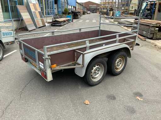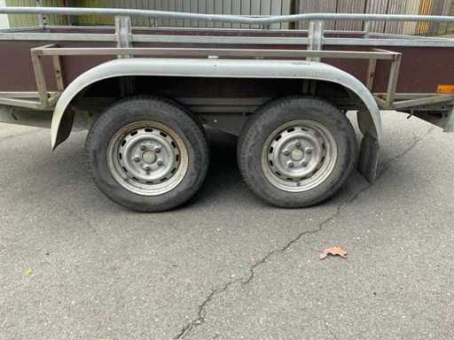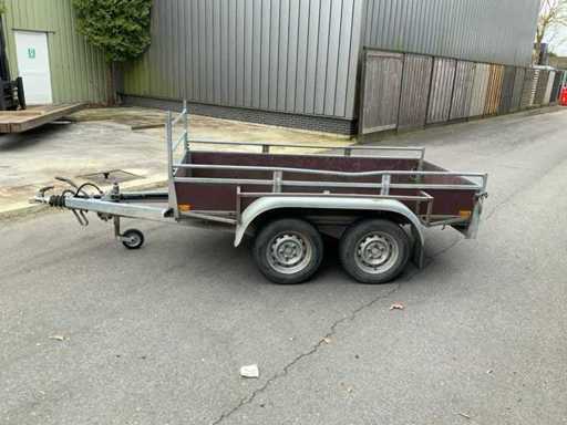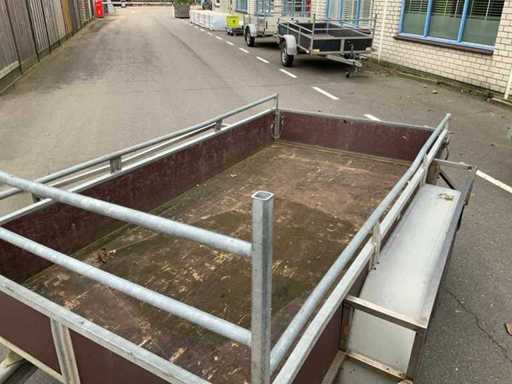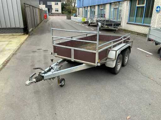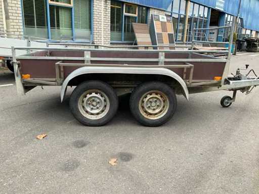 Tandemasser aanhangwagen, geremde uitvoering, dubbelas, houten laadvloer, aluminium borden met opzetrekken, neuswiel, koppeling met oplooprem