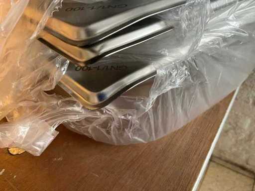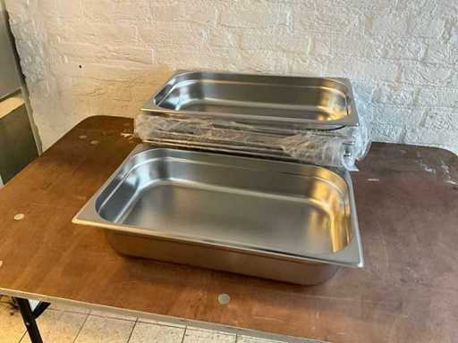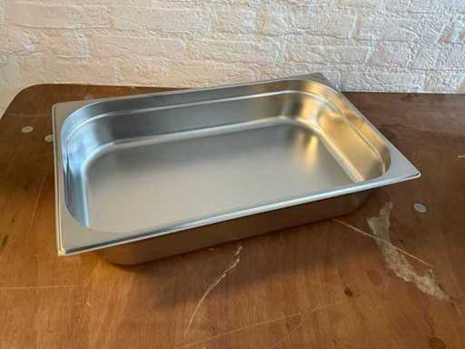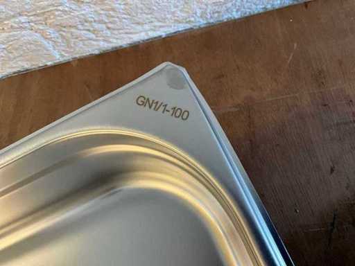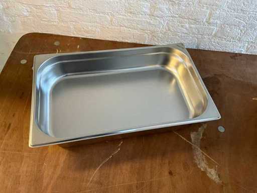 ongebruikt; 100 mm. diep.; enkele licht gedeukt.