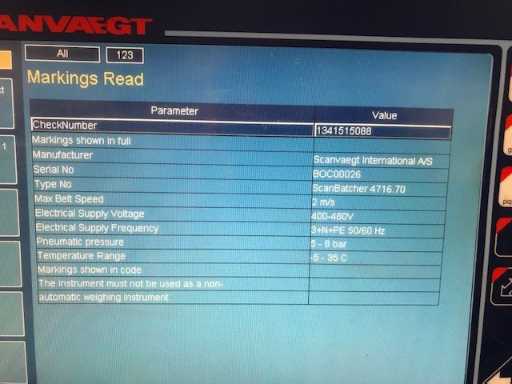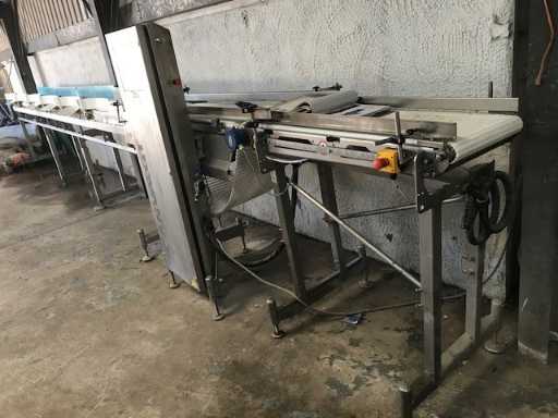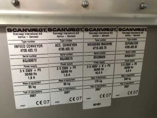 6-stations lijngrader, in-feed band, pacerband, weegcel, bandbreedte 430 mm, tot 7 kg product, 1,2 m lange weegcel, moet elektrisch gecontroleerd worden (niet-runner, product is CE-gemarkeerd. Volgens de dataplaat is dit product van Denemarkense oorsprong, de getoonde kosten zijn ex-works kosten.