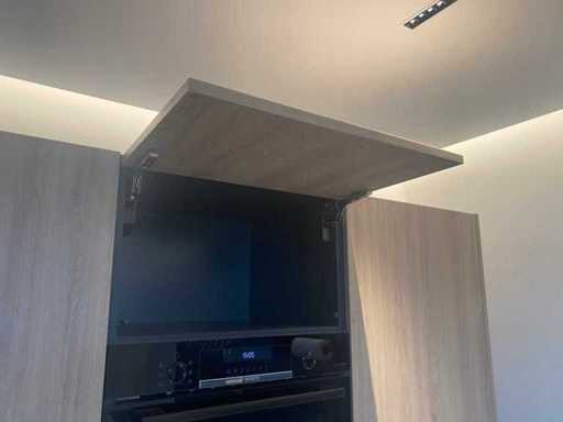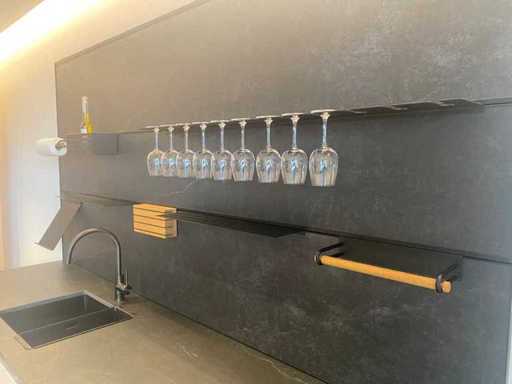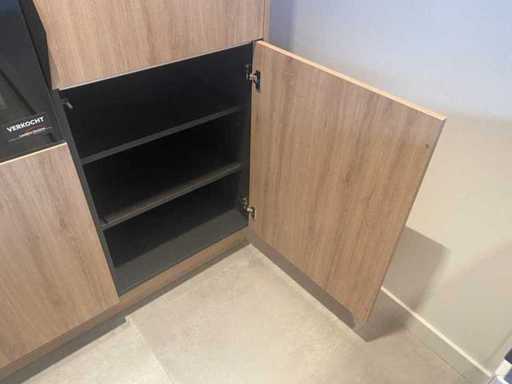 Afmetingen kastenwand circa 180x60x210 cm; reeds gedemonteerd en ingepakt op pallets. (afstapelen, omruilen of statiegeld per pallet); pallets zijn niet inbegrepen; statiegeld betalen bij afhalen, of pallets afstapelen; werkblad niet ingepakt op pallets (25-LWK-02300)