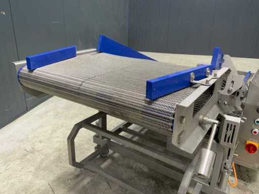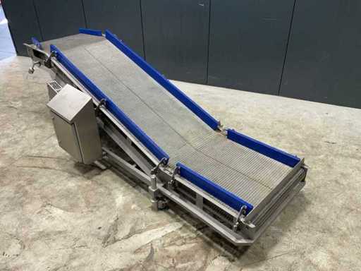 Opvoer gaas transportband. Opvoerhoogte: 900mm. Verrijdbaar.