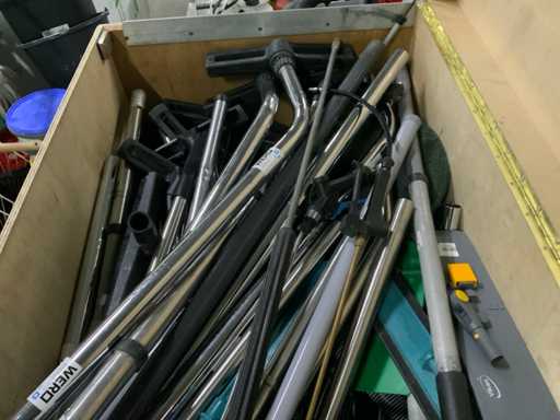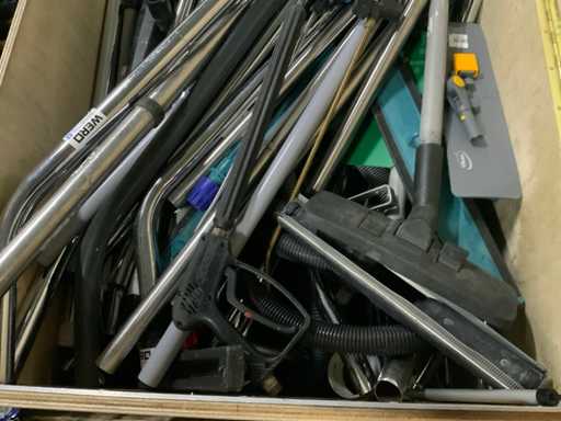 Mobiele kar, Met inhoud diverse stofzuiger slangen, buizen en hogedrukspuit onderdelen