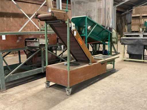 bandbreedte ca. 425 mm; doseerband afm. ca. 1100x500 mm; opvoerhoogte ca. 1900 mm; mobiel; 380V