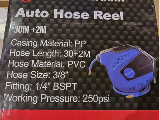 automatische luchtslanghaspel 30 meter, incl 2 meter aansluitslang, muur bevestiging, in doos