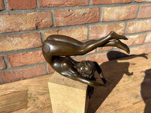Vervaardigd uit brons; v.v. marmer voet