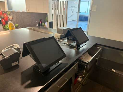 Automaten Seitz kassa voor Catering SEITZ / AURES POS terminal Touchscreen + thermische printer + badgelezer 7x Gebruikt, compleet