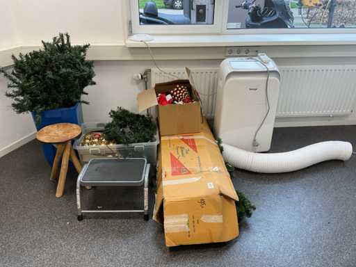 Inclusief diverse kerstbenodigdheden, opstapje en houten bijzettafel