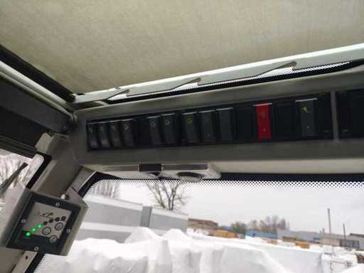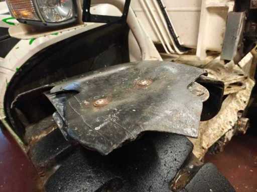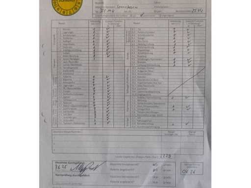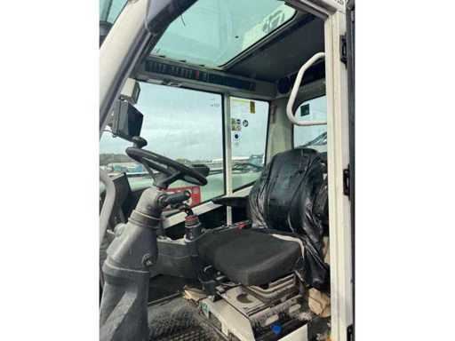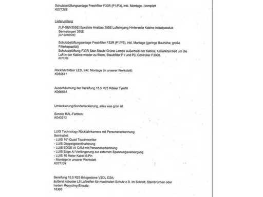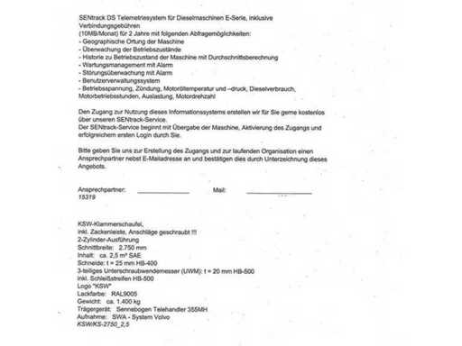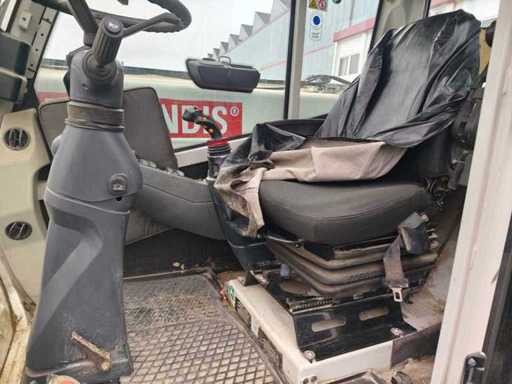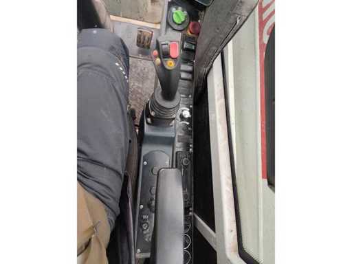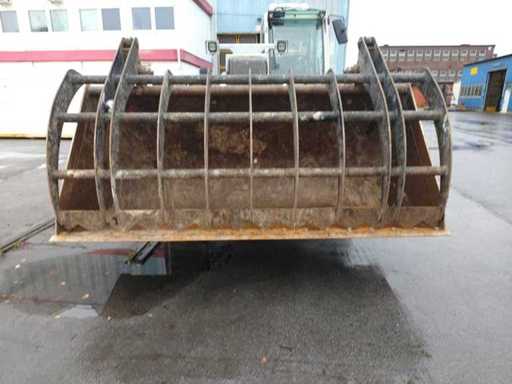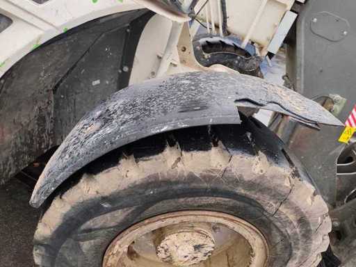 Algemene gebruiks- en botsingsschade. Het apparaat komt uit de afvalbeheerindustrie. Het apparaat is overgeschilderd met wit, de verf bladdert deels af. vreemd. Vuilafleider (plastic) is aan de voorkant ernstig beschadigd. Stofbeschermingshoezen van de hydraulische cilinders zijn losgetrokken van de opzetbak. Voorste schop met snelwisselmechanisme, uitneembaar voor transport.