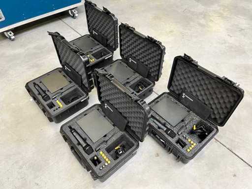 Op de foto's zie je 5 radioverbindingen / koffers, die we allemaal in verschillende partijen aanbieden. Let op: je biedt alleen op het opgegeven aantal (hier 2 sets)!
