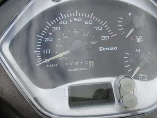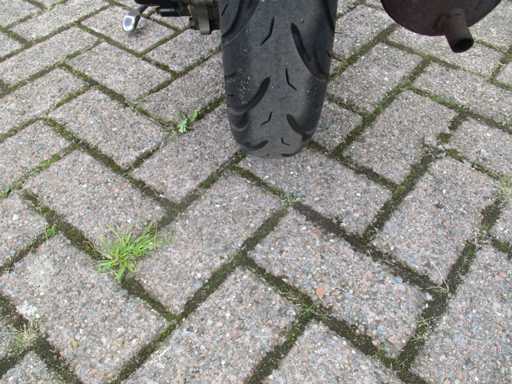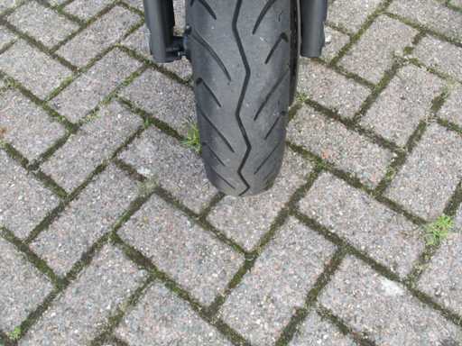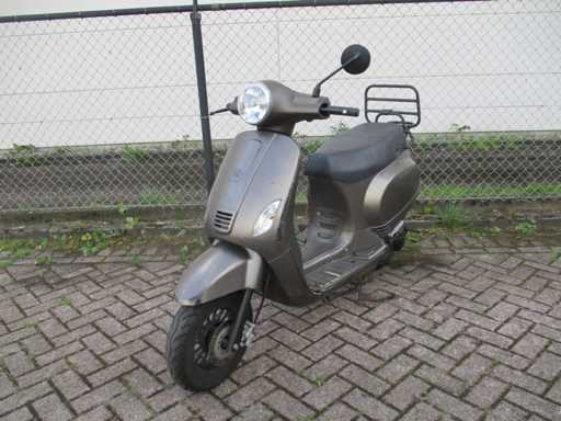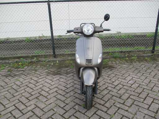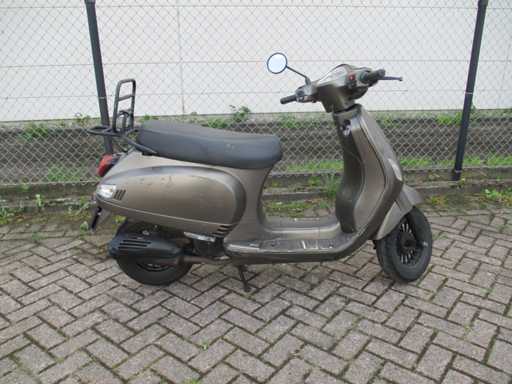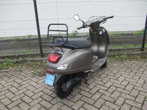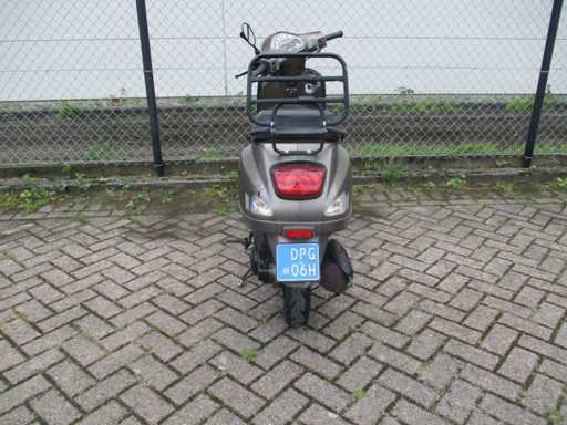 Snorscooter met 1 sleutel, scooter met rondom beschadigingen. Motor loopt (m.b.v. accu hulp), verdere staat van onderhoud onbekend.