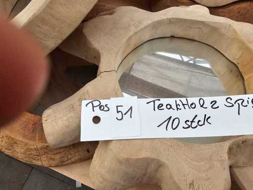 Set van 10 rustieke teakspiegels - unieke natuurlijke houten stukken