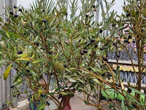 Breng een mediterrane uitstraling in je buitenruimte met deze exclusieve set van twee olijfbomen. De bomen maken indruk met hun elegante, hoge stamgroei en de karakteristieke, zilvergroene bladeren. Het is bijzonder opmerkelijk dat deze exemplaren al vruchten dragen en een aanzienlijke hoogte van ongeveer 200 cm bereiken. Dankzij hun winterhardheid tot -12°C zijn ze ideaal voor het ontwerp van terrassen, opritten of tuinen. De hoogwaardige plantenbakken in blauw en antraciet maken het geheel perfect compleet.