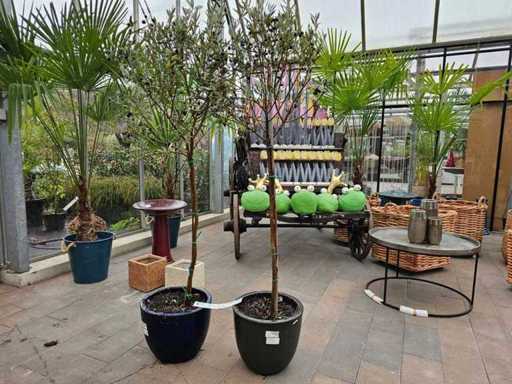 Set van 2 olijfbomen (ca. 200 cm) inclusief decoratieve plantenbakken
