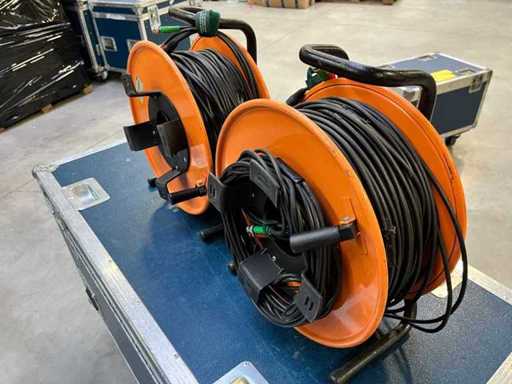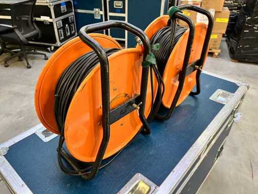 2 kabeltrommels uitgerust met elk 3 kabels: