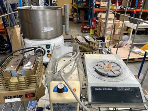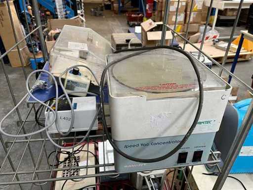 Grote hoeveelheden laboratoriumapparatuur, waaronder centrifuge, balans, pomp, verwarmingselement, vibrator, enzovoort.