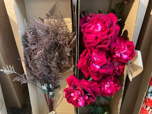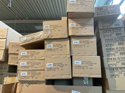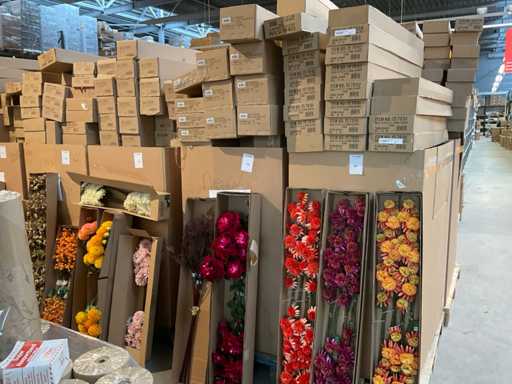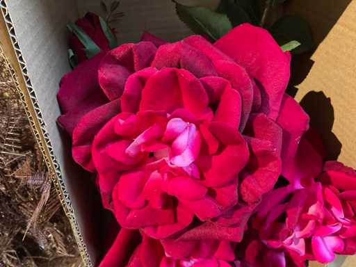 Inhoud van 1 doos op pallet bestaande o.a uit rozen en Aspargus spray