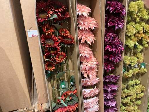 Inhoud in van 1 doos op pallet bestaande o.a uit Dahila en Sunflowers