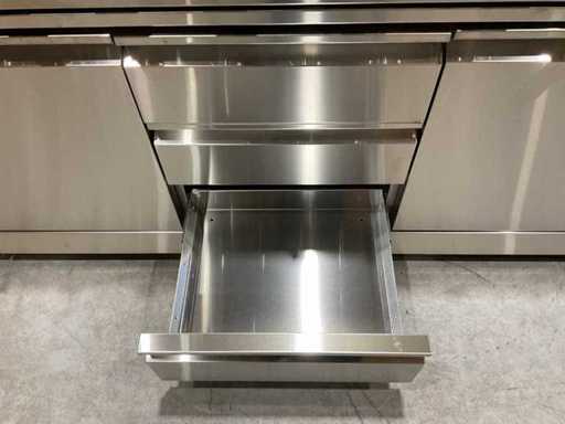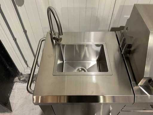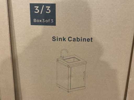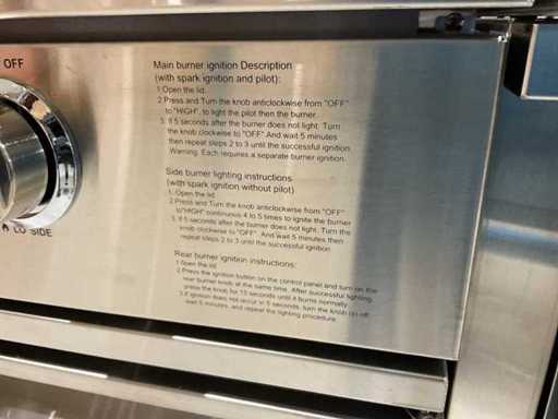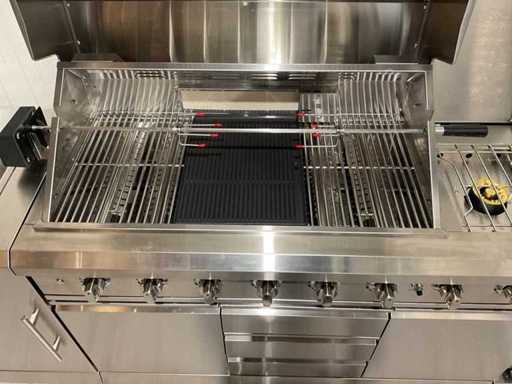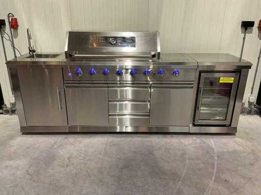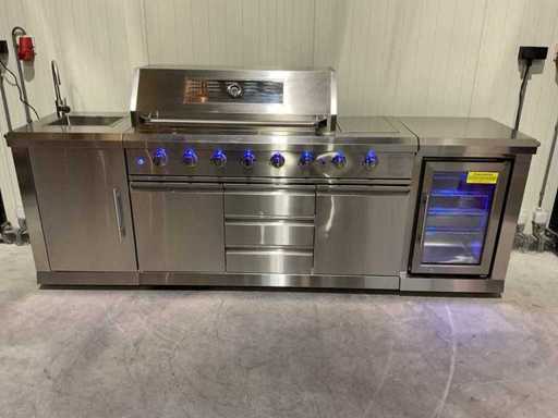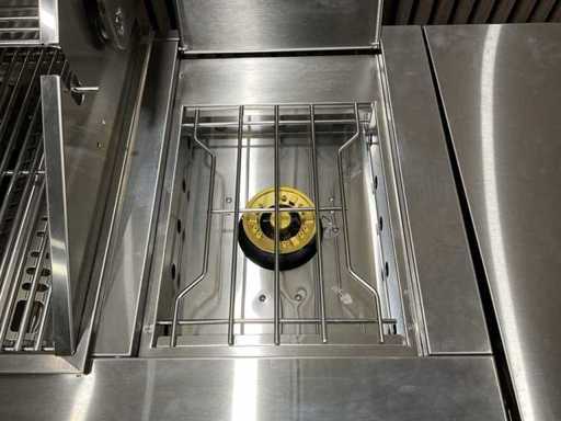 Voorzien van 6 hoofbranders; wasbak; koelkast; extra grillplaat; totale kookoppervlak: 960x455 mm; verpakkingsgewicht: Doos 1/3 140kg 2/3 55kg 3/3 34kg; ongebruikt; model is uit doos