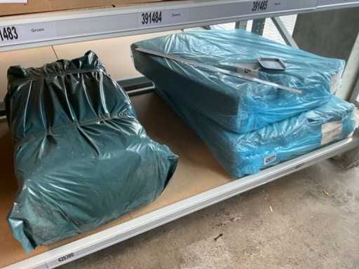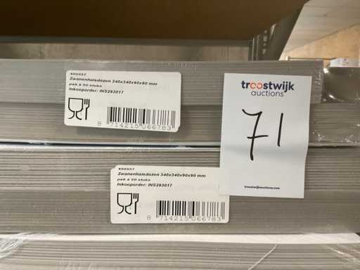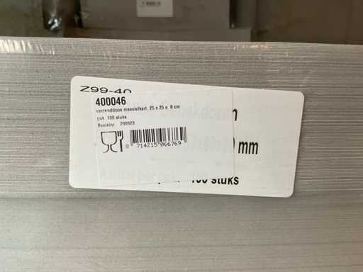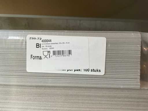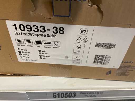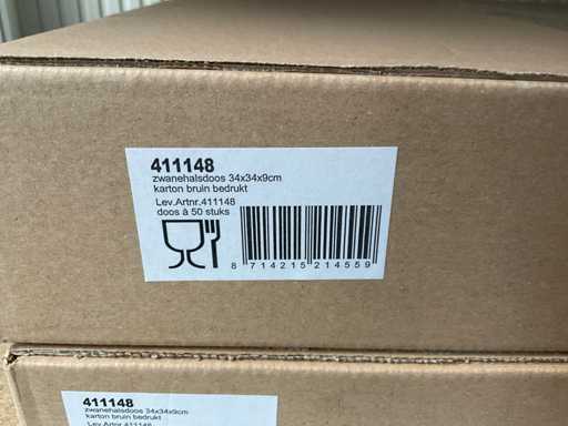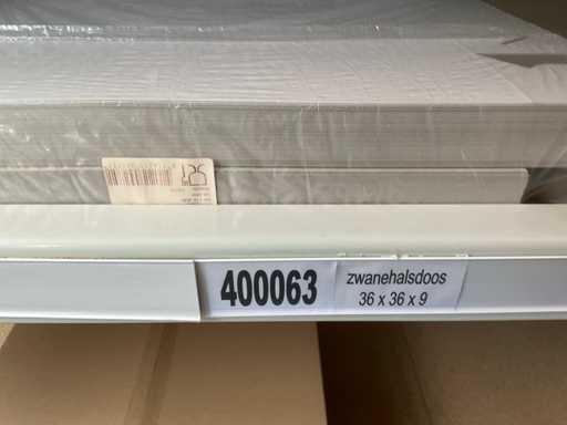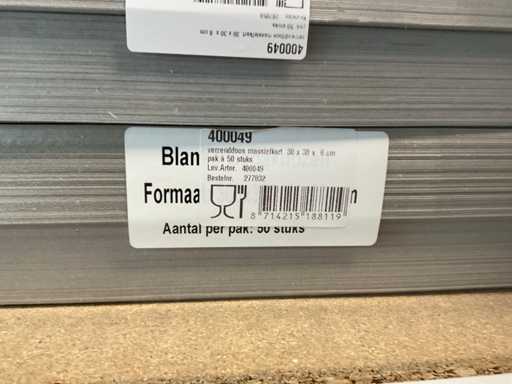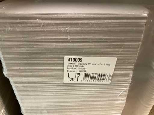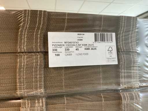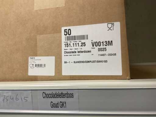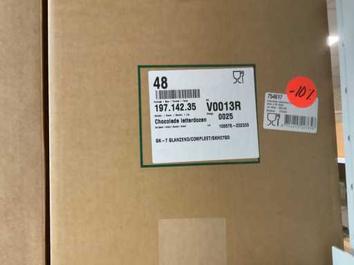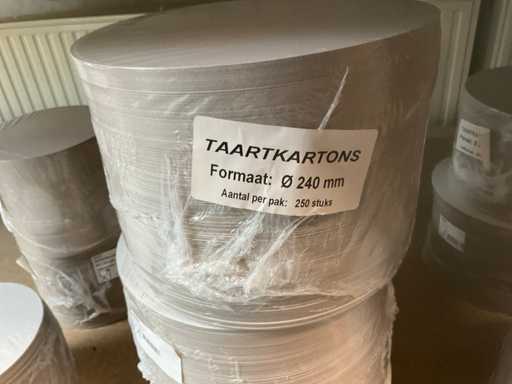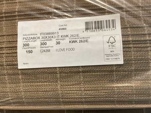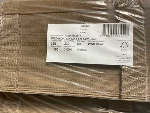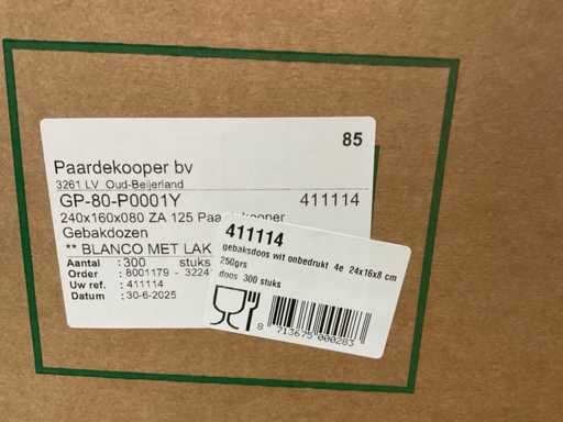 Inhoud 2,5 stellingdelen bestaande uit o.a. chocolade letterdozen, taart/gebaksdozen, pizzadozen, decoratief verpakkingsmateriaal, vellen, servet dispenser, etc, exclusief stellingen