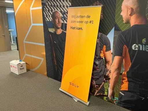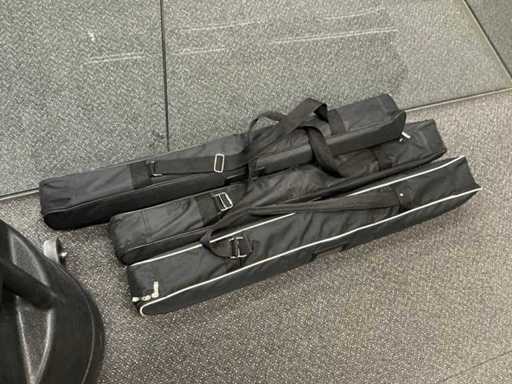 Wand in rolkoffer en 3 roll up banners in opbergtas. 1 rolup banner zonder tas