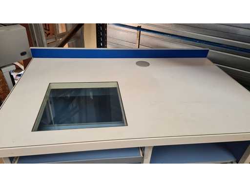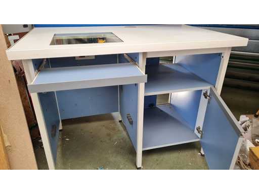 Met computer, tablet, toetsenbord en 35x35 glazen venster voor toetsenbord.