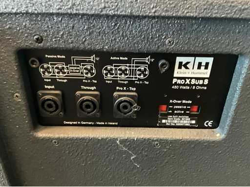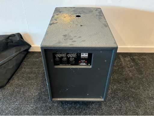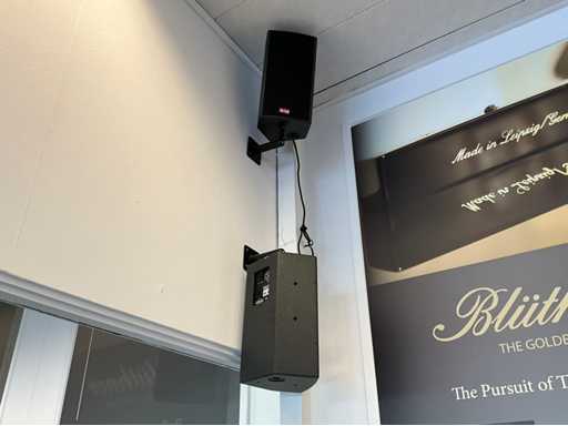 Bestaande uit: Bose B2 bass module, KH Pro X Sub S en 2x KH Pro X 6 MKII; 2 speakers wandgemonteerd op circa 2/2.5 meter