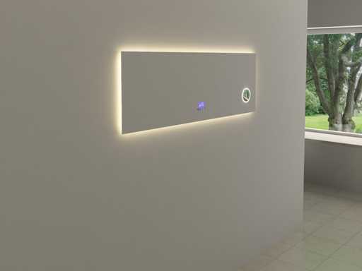 Type: RALM-150 Voorzien van: Touch bediening via digitaal display – LED verlichting in 3 kleuren, dimbaar – Bluetooth & speakers – Digitale klok – Digitale temperatuurmeter – 220 volt aansluiting – Anti-fog technologie door verwarming in de spiegel – Vergrootglas (vergroot 3x) in de spiegel Ø10 cm - Kopervrije spiegel - 1,5mm explosieveilige laag aan de achterkant.