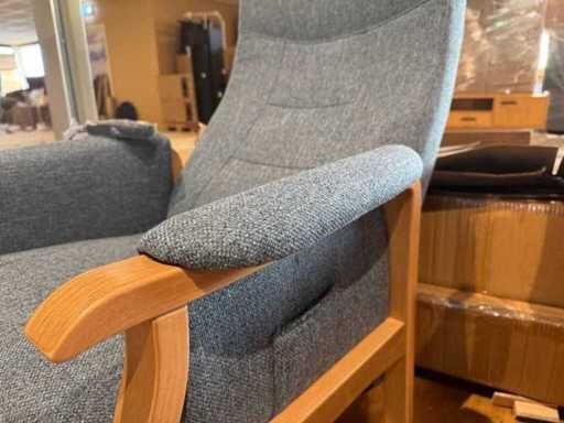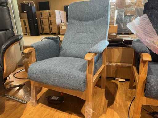 Sta-op stoel - blauw stof - elektrisch verstelbaar - houten frame